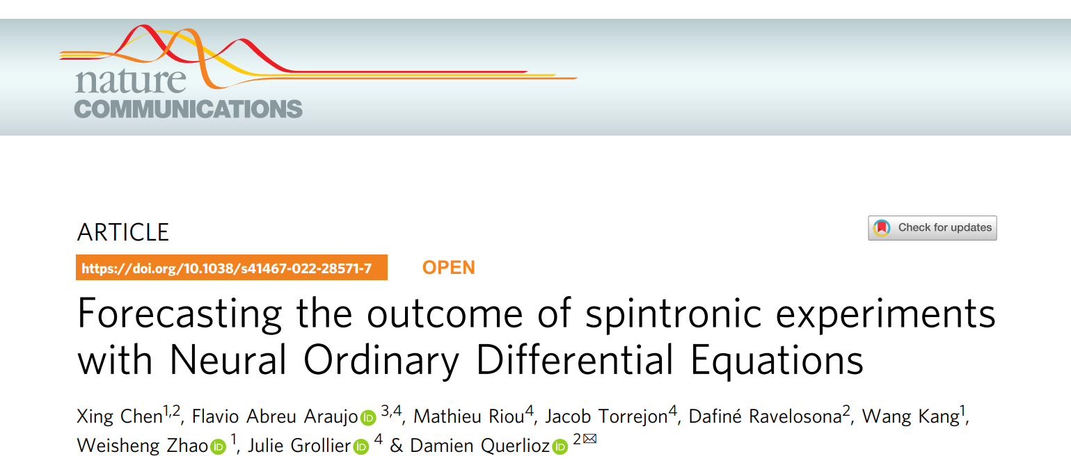 2022年2月23日,《自然·通讯》(Nature Communications)期刊在线发表了bv伟德康旺副教授、赵巍胜教授课题组的最新科研进展《Forecasting the outcome of spintronic experiments with Neural Ordinary Differential Equations》。该工作首次提出基于神经微分方程建立通用的自旋电子器件模型的方法,以用于预测实验数据、提高微磁学仿真性能等。