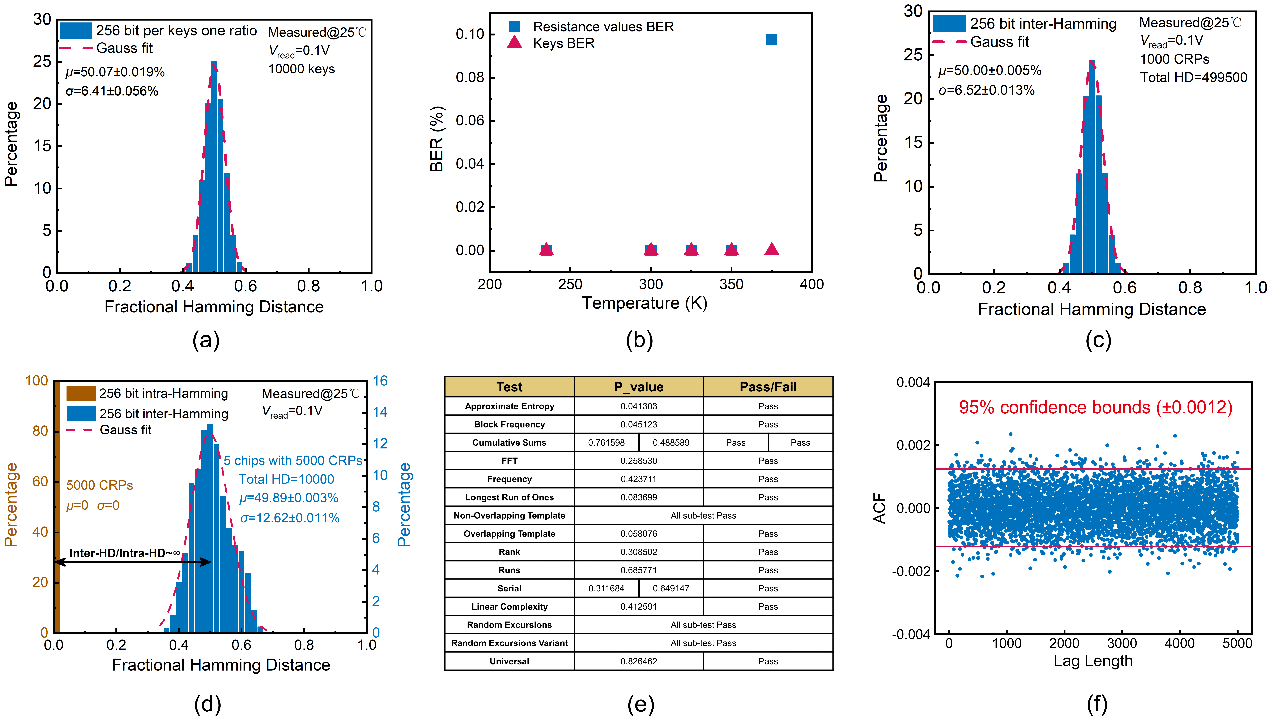 图3. SOT-MRAM sr-PUF性能评估