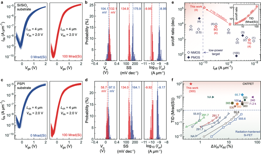 该研究为CNTFET的后处理提供了一种高效、可扩展的工业化路径,也为其在深空探测、核能应用等强辐射环境中的部署应用奠定了技术基础,标志着碳纳米管晶体管向实际应用迈出关键一步。