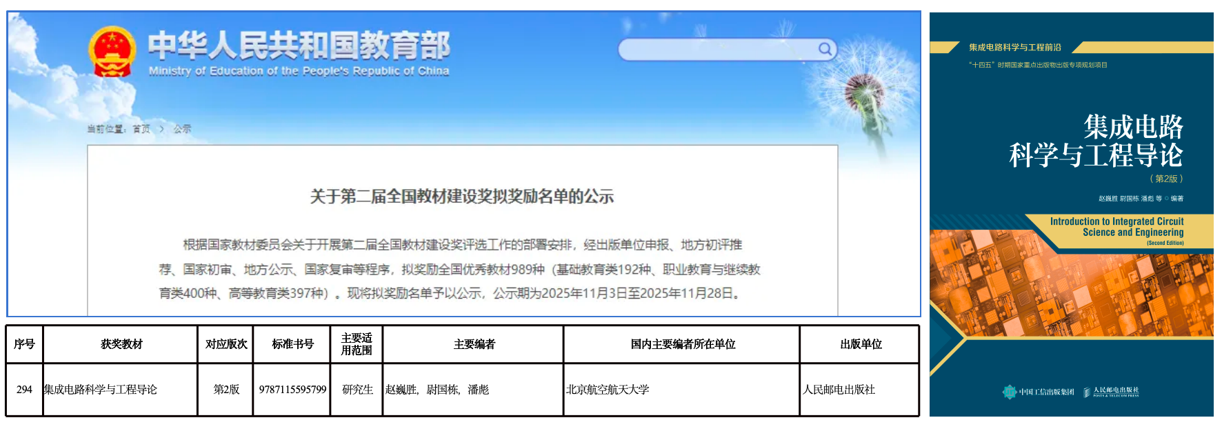《集成电路科学与工程导论》获评第二届全国教材建设奖