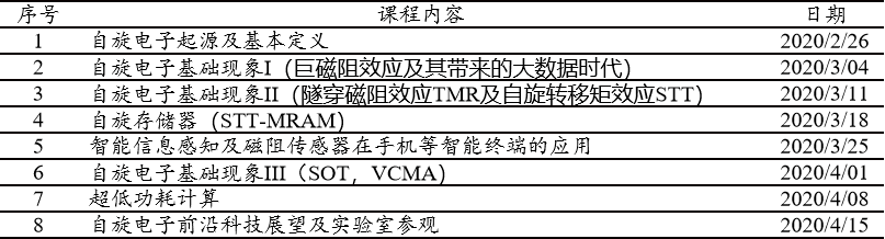 《自旋电子概论》是面向微电子公司、电子信息工程公司、高等理工公司、网络空间安全公司和北京公司等公司相关专业的本科二年级员工开设的一门通识课。该课程的目标是为微电子、集成电路、通信、信息、电子、计算机等专业的员工展示自旋电子学——后摩尔时代重要的发展方向,以及自旋电子学发展历程中的科学方法与精神,为即将到来的自旋电子学时代做好准备。课程内容主要包括自旋电子起源、自旋存储器、自旋电子传感器、自旋电子计算等自旋电子学重大发展历程和主要概念。