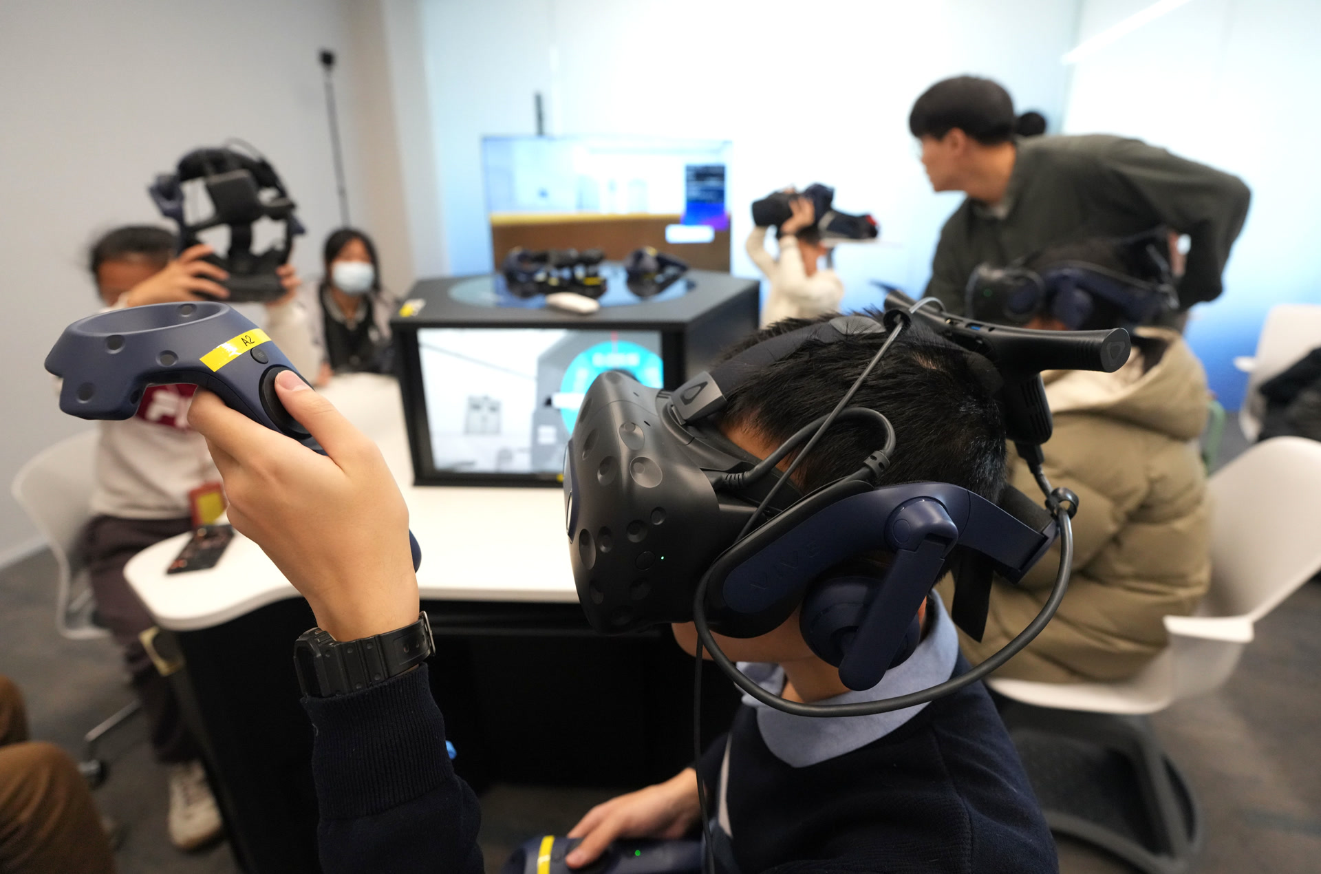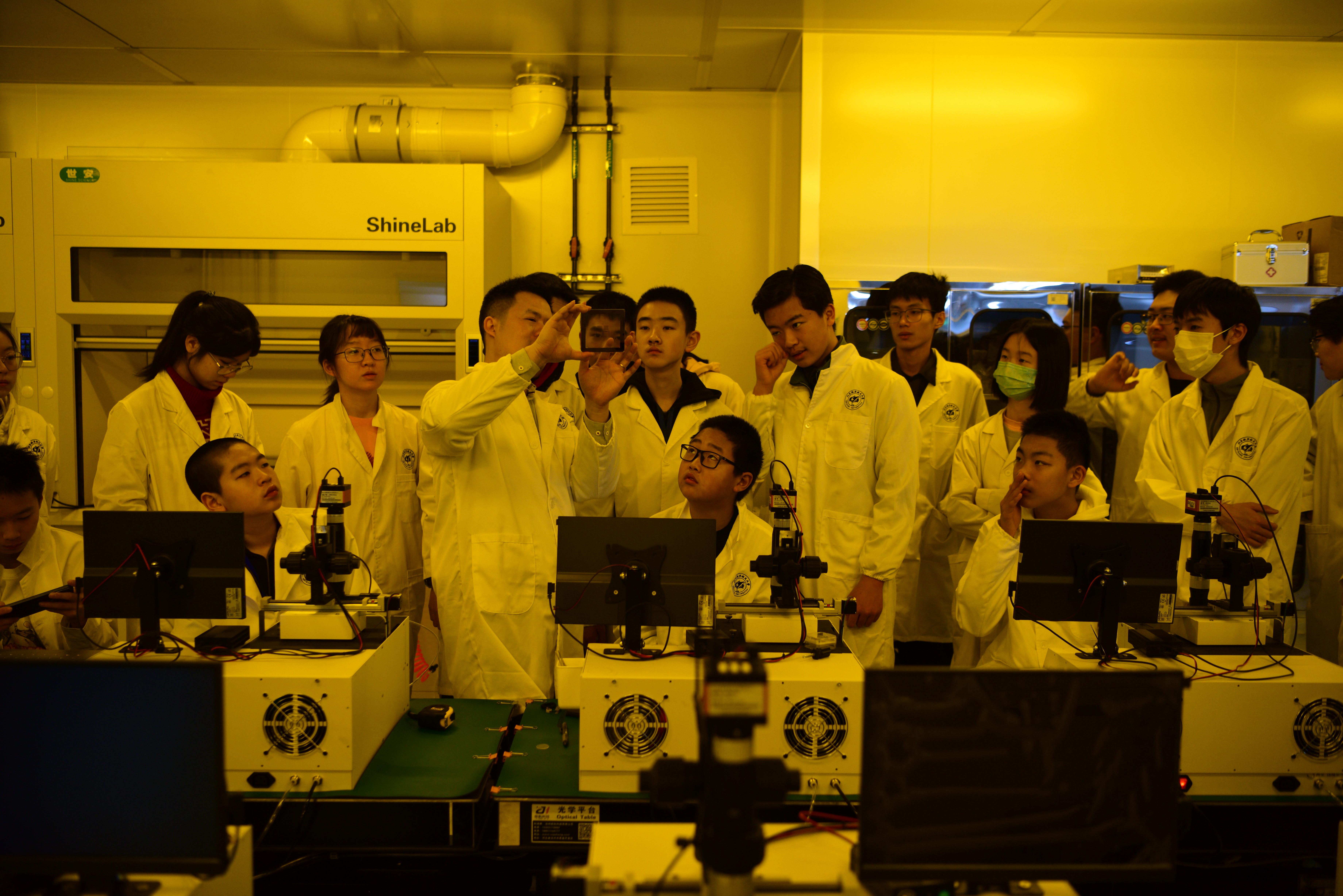 本次活动中,集成电路公司更是打破常规,为营员开放大学实验室。由公司实验室老师带队,手把手教学科研教学级光刻机的原理及使用,并让每位营员操作光刻机,完成磁传感芯片的加工,每人收获一枚自己亲手制作的芯片。此外,营员们还来到了集成电路虚实结合实践基地,该基地包含一套12寸晶圆厂完整产线的虚拟仿真模型,营员们通过vr眼镜体验到最先进的晶圆厂里的尖端半导体设备,并可以通过互动对每台设备进行实践操作。该基地还包括一套尖端集成电路系列装备的拆解仿真模型,包括光刻机、刻蚀机、镀膜机、离子注入机等产业级设备,员工可以通过互动对尖端设备进行拆解,了解设备内部构造和工作原理。