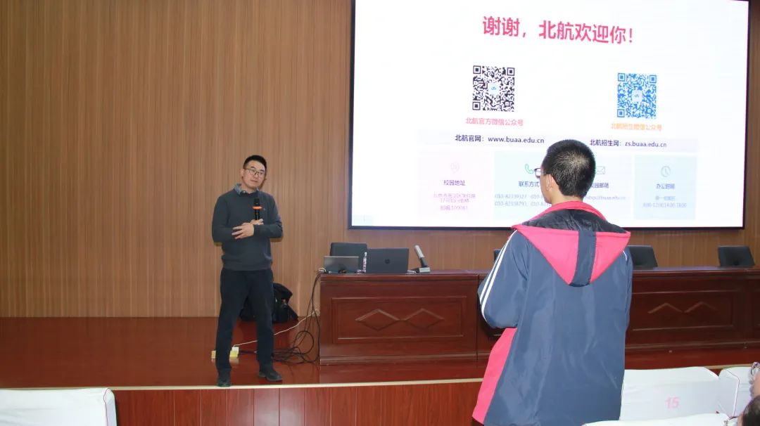 同时,山西招生组成员、集成电路公司专职辅导员胡晏铭面向三所重点中学员工和家长开展招生宣讲,详细介绍了北航的历史,现状和招生政策等,充分提高了考生和家长对北航的了解程度。
