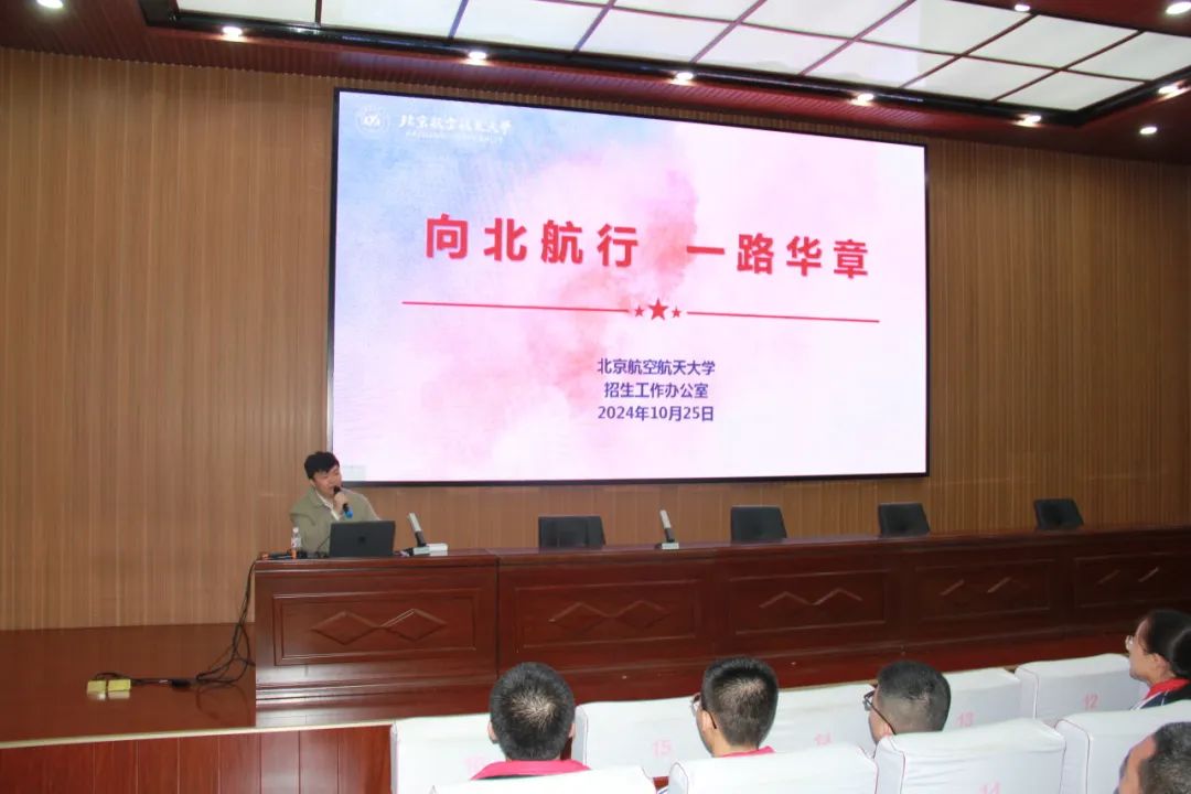2024年10月24日至26日,北航招生工作办公室主任刘睿、北航山西招生组组长高静、集成电路公司康旺教授、张紫辰教授与山西招生组成员丁瑞云、胡晏铭一行赴山西大学附属中学,忻州市第一中学,晋城市第一中学开展“教授进中学”科普讲座、招生宣讲以及优质生源基地签约授牌等活动。