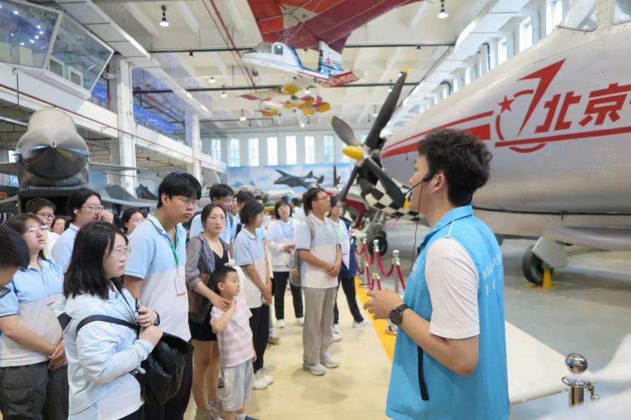 首先,晋城二中师生参观了北航航空航天博物馆。讲解志愿者为同学们详细介绍了飞机升空的科学原理以及实际飞行中技术难题和困难挑战,带领同学们近距离观察了机身内部精密结构。在这里,同学们不仅增长了航空航天知识,还深刻感受到祖国航空航天事业发展和成就的艰辛不易,进一步激发了同学们的爱国情怀和民族自豪感。