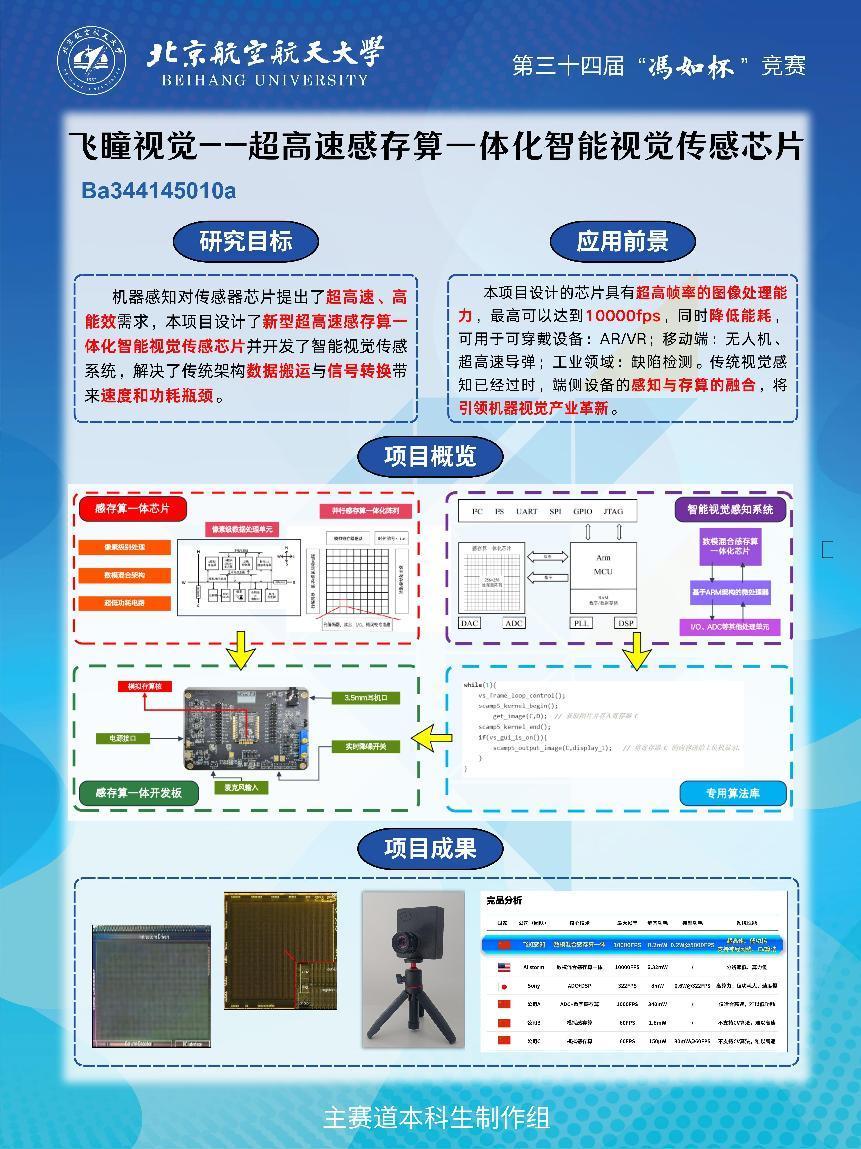 其中,公司“飞瞳视觉——超高速感存算一体化智能视觉传感芯片”团队,取得了本次冯如杯主赛道本科生制作组一等奖最高分的成绩。