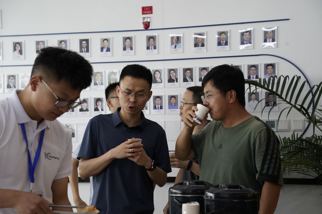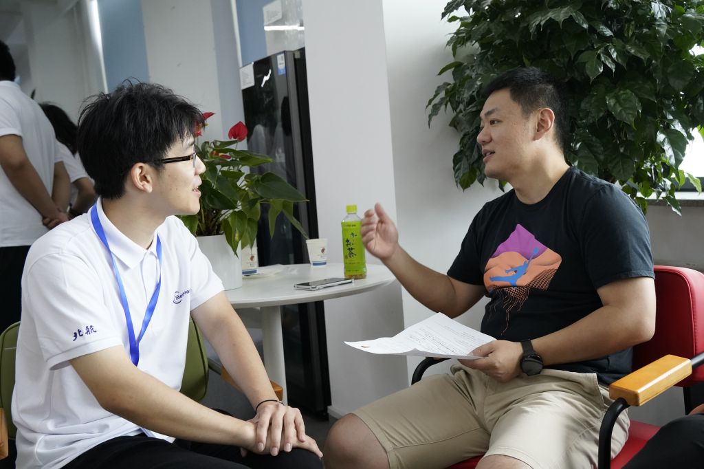 下午,夏令营综合面试在第一馆内进行,同时,公司在第一馆的二楼休息区安排了导师面对面茶歇活动,集成电路公司的材料与器件系、设计与工具系、工艺与装备系三个研究方向的导师与营员们进行了面对面的交流。通过这些交流,营员们进一步了解了集成电路公司的研究方向和导师团队,深切体会到了公司优越的学习环境和科研平台的优势。