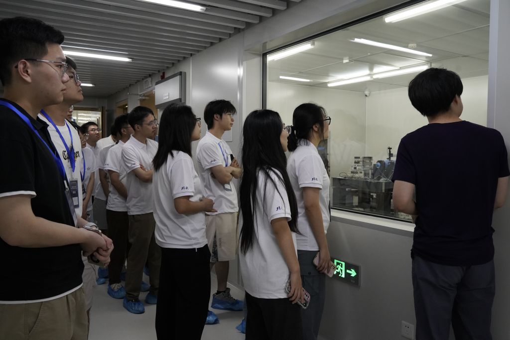 副经理王新河、微纳中心郑翔宇、微纳中心郑天宁带领营员们参观了B1微纳中心,详细解读了各个实验室的设备及相关技术,使营员们对芯片制造过程有了更深入的理解。