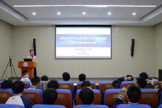 随后,经理助理彭守仲老师作试验班培养专题报告。报告中,彭老师详细介绍试验班培养特点、课程包设置及推免方案,并建议同学们尽早加入课题组,在导师的指导下开展更加深入的科学研究,为博士阶段科研学习打牢基础。