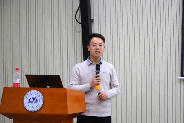 首先,副经理王新河老师作公司科研资源介绍的专题报告。王新河老师重点介绍了MRAM先进存储器、多核异构智能处理器、感存算一体集成芯片等重点布局方向,以及公司国际科技合作平台、产教融合培养模式。王老师鼓励试验班同学紧跟行业前沿,加强基础知识学习和科研训练,借助好公司科研资源、国际化平台及产教融合机会,实现全面成长。