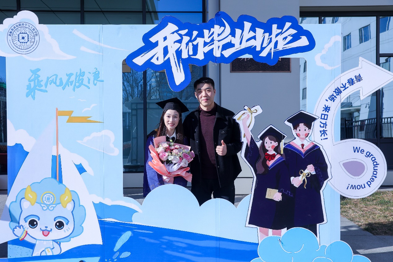 毕业生代表刘艳芳同学代表全体毕业生向父母、母校、老师们表达了感恩之情。她回顾自己在公司求学的两年半时光,在一次次的经历中浅尝“轻舟已过万重山”的欣喜;在不确定的处境中不断探索实践,磨砺自身、坚定信念;期盼着发挥所学,将理论付诸实现,为“中国芯”贡献自己的绵薄之力,展现新时代青年的成长与担当。