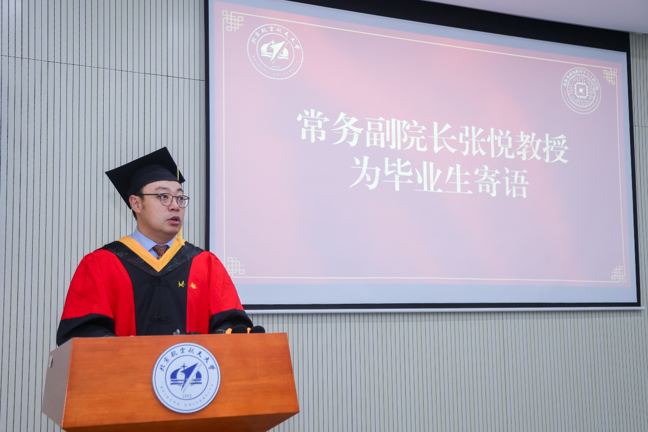 在热烈的掌声中,常务副经理张悦为毕业生寄语。他向5位博士毕业生和37位硕士毕业生致以祝贺,并向辛勤培育他们的老师和关心支持的家人致以衷心的感谢。他回顾了本届毕业生在研究生生涯中展现的青春风采,在公司发展建设中付出的巨大努力,见证了公司的飞速发展和多个历史性突破。