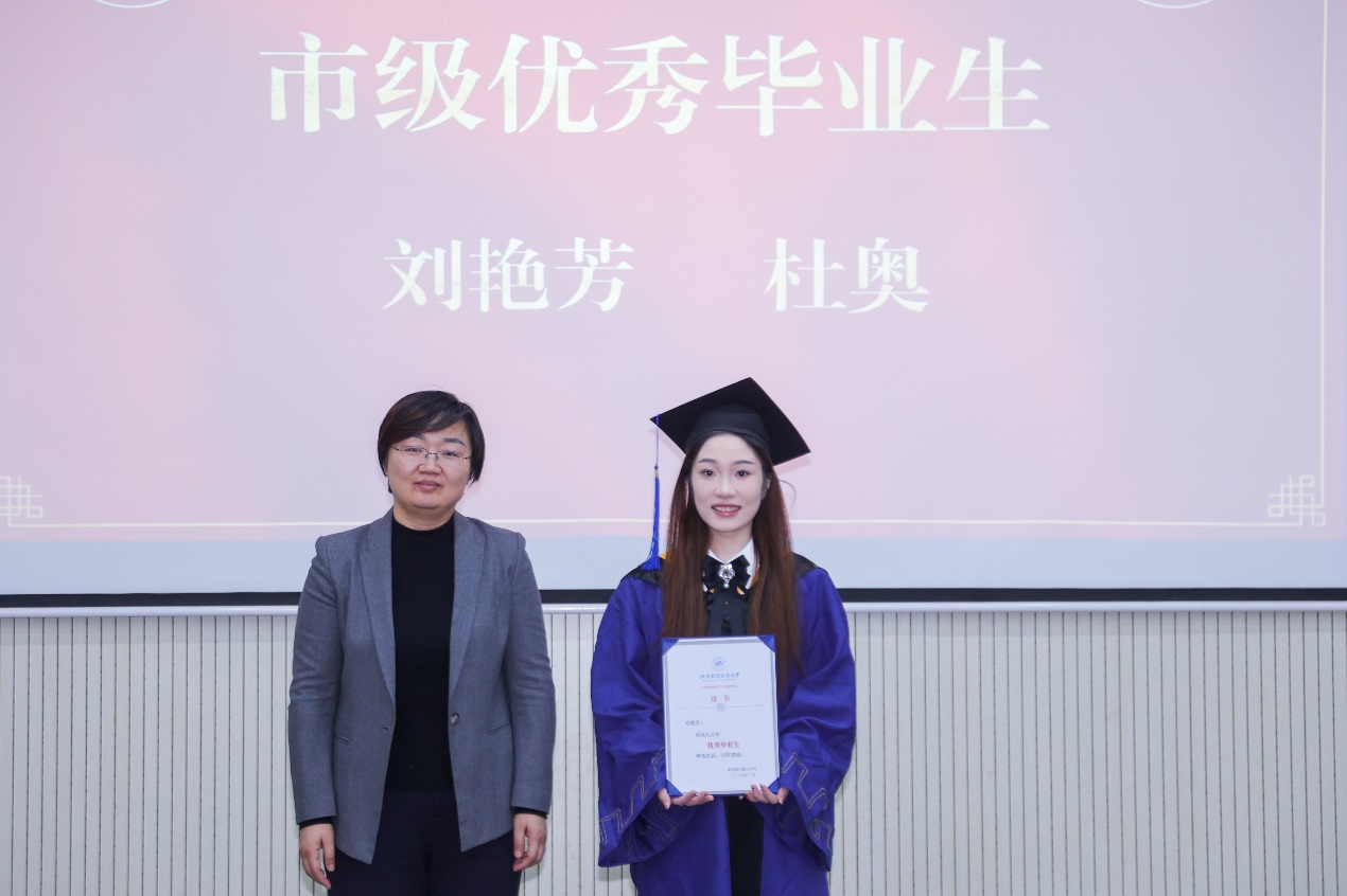 党委书记高静为北京市优秀毕业生颁发获奖证书。
