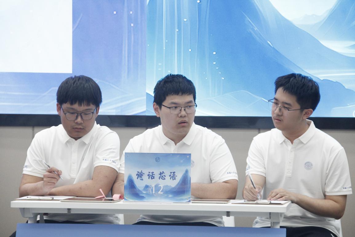 决赛第三轮迎来了“飞花令”的角逐,“诗话芯语”队与老牌劲旅“星火燎原”队狭路相逢,经过多轮交锋,“诗话芯语”队摘得大会一等奖。