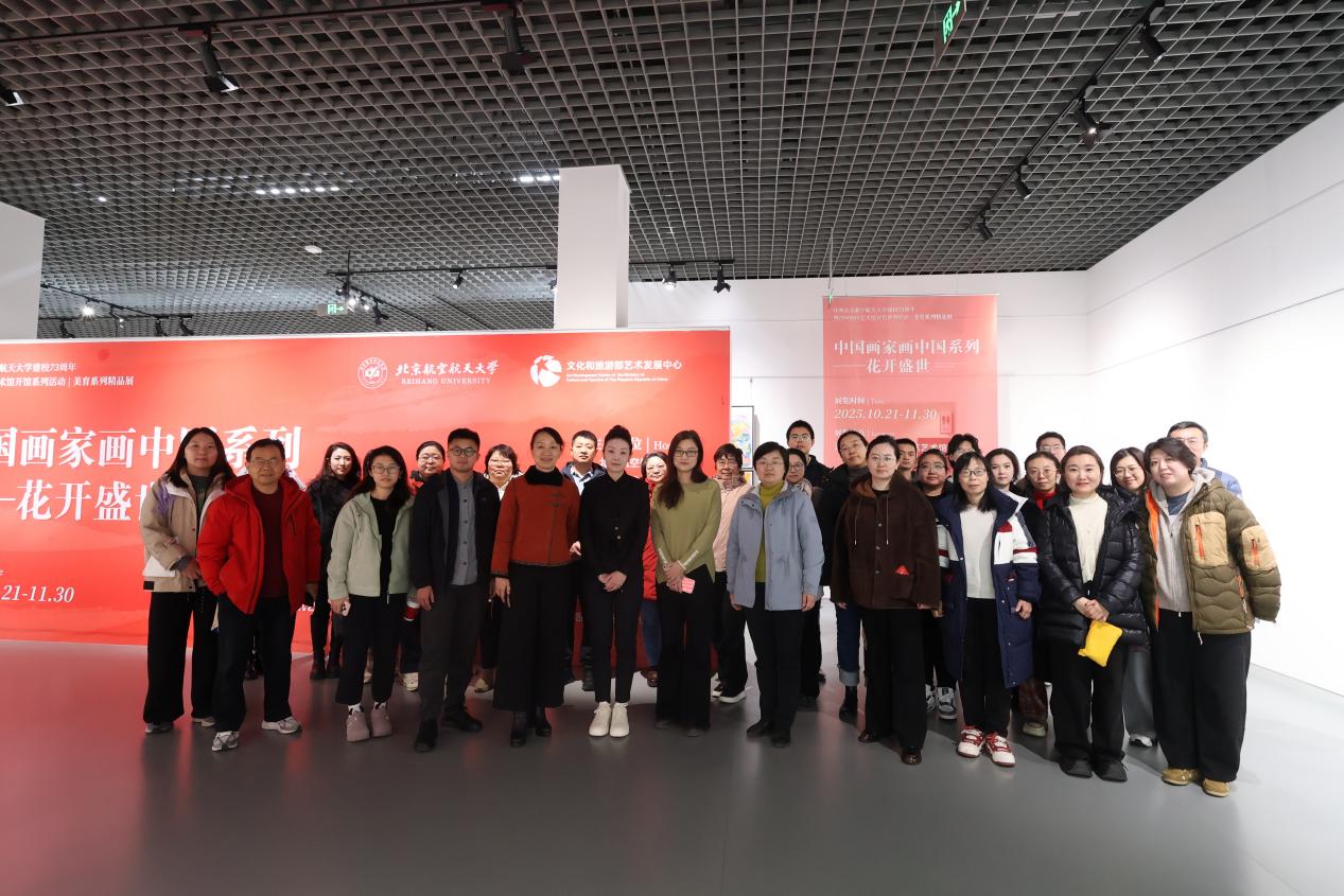 为深入推进美育浸润行动,提升师生审美素养与文化自信,11月18日中午,由美育中心、教师发展中心与bv伟德联合举办的"中国画家画中国系列——花开盛世"美育精品展现场教学活动在北航艺术馆成功举行。本次活动由教师发展中心主任李红捷主持,特邀文化和旅游部艺术发展中心美术部副主任黄祺现场导览讲解,为师生带来一场融合艺术赏析与文化传承的沉浸式美育体验。