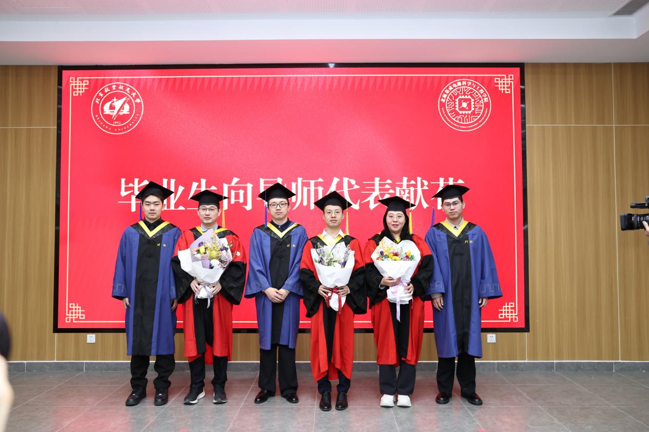毕业生代表向导师代表献花,表达自己对导师辛勤指导的感激。