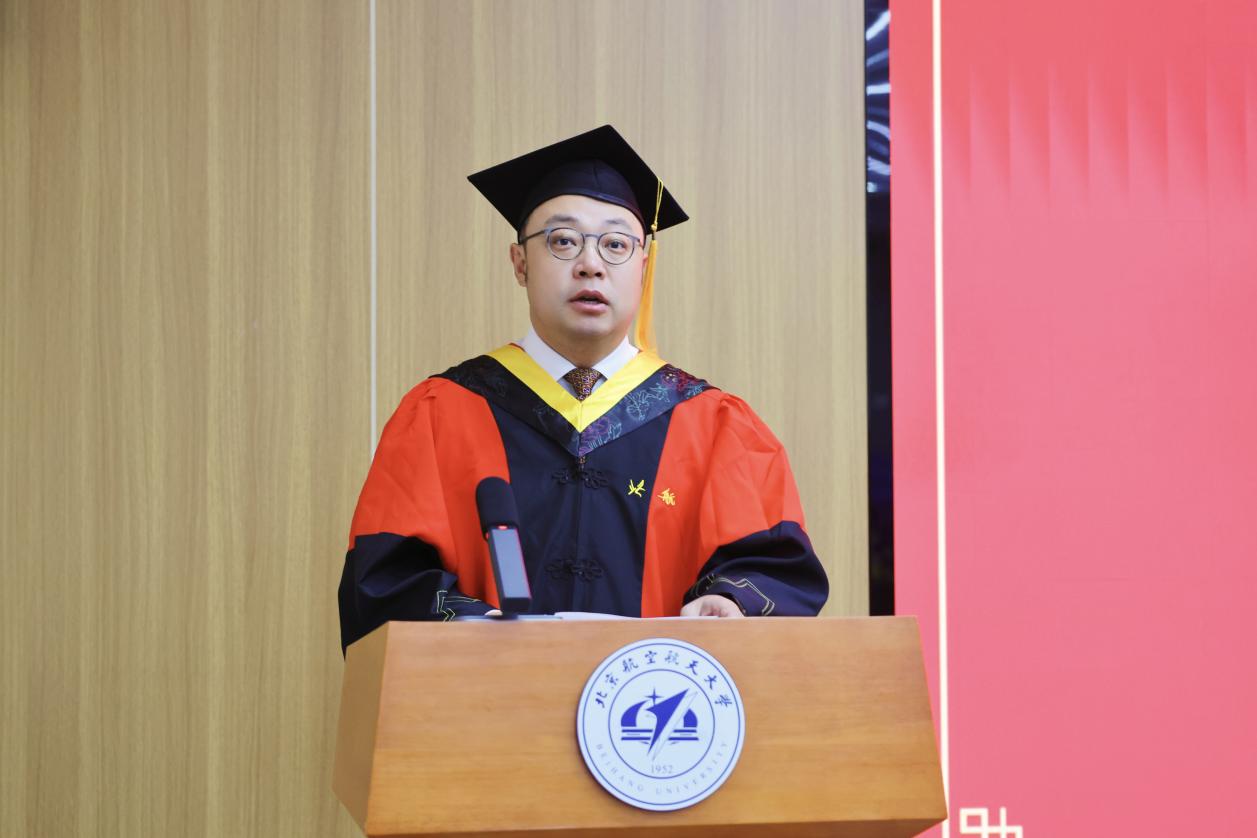 毕业生代表、2023级硕士研究生刘继隆代表全体毕业生向母校、老师、家人表达了感恩之情。他回顾自己在公司求学的本硕七年时光,不仅是公司发展的见证者,更是这份辉煌征程的亲历者、参与者,与公司携手同行、双向成长。这段经历,让他从迷茫忐忑成长为独立敢为的青年,更沉淀下“矢志不渝,敢为人先,致真唯实,芯片报国”的北航“芯”精神,成为未来前行的宝贵财富。