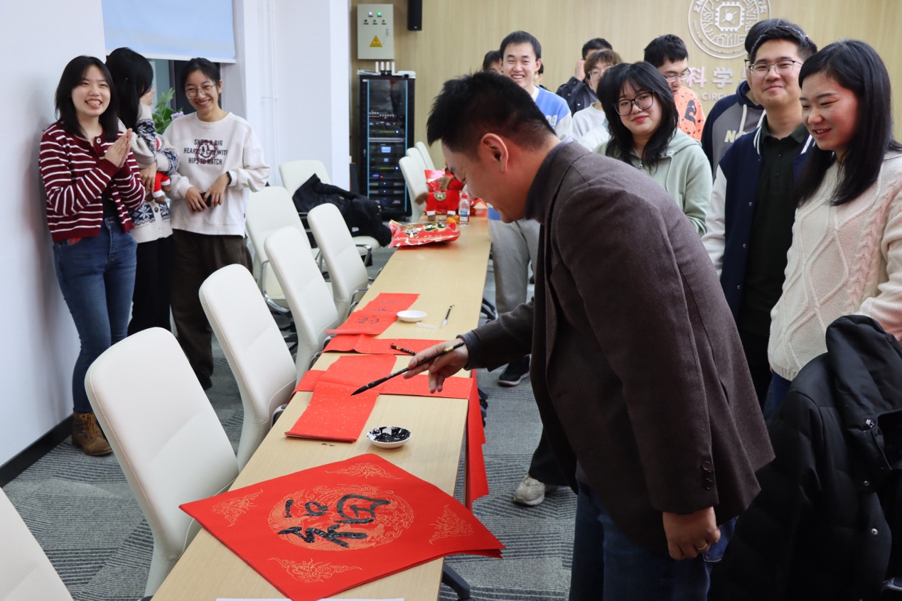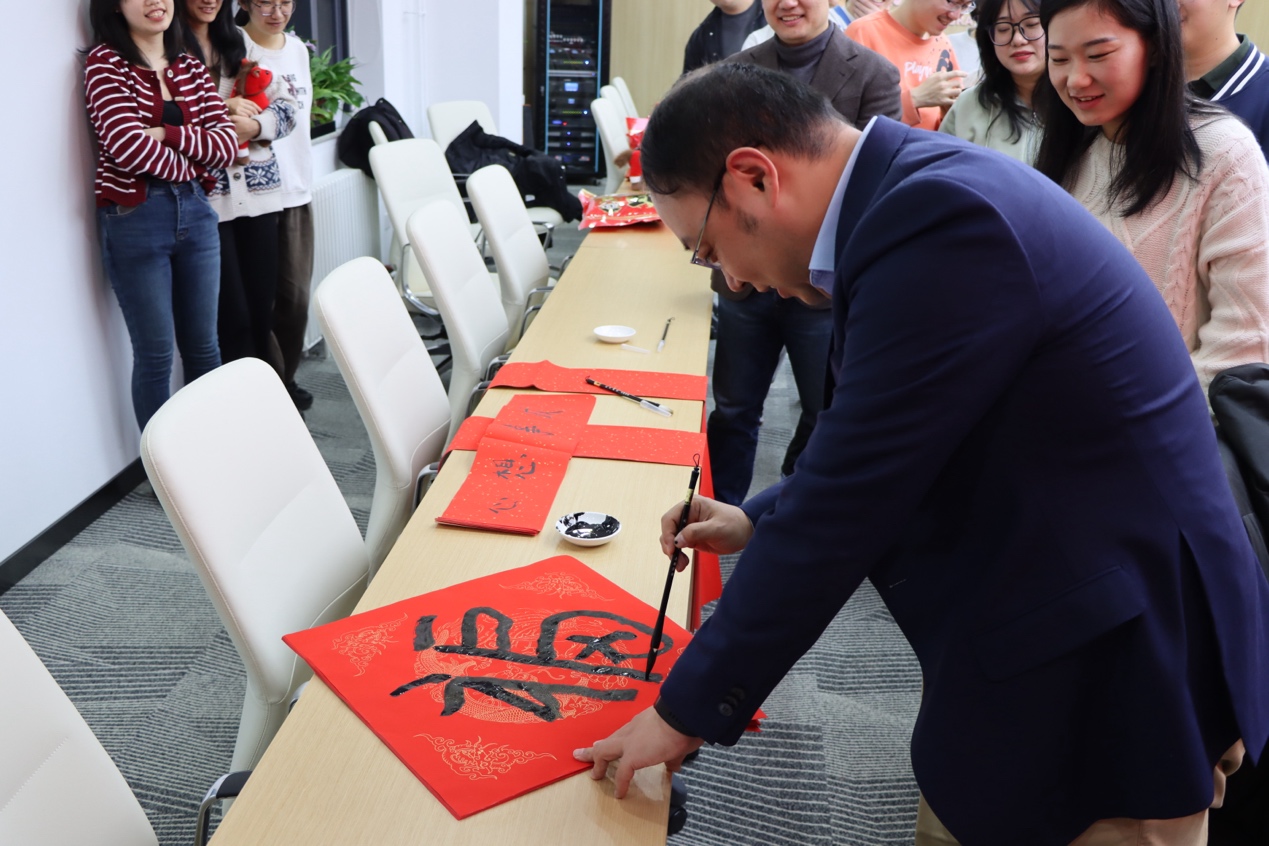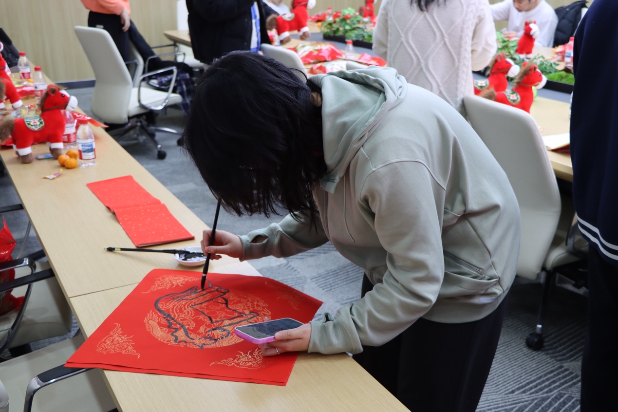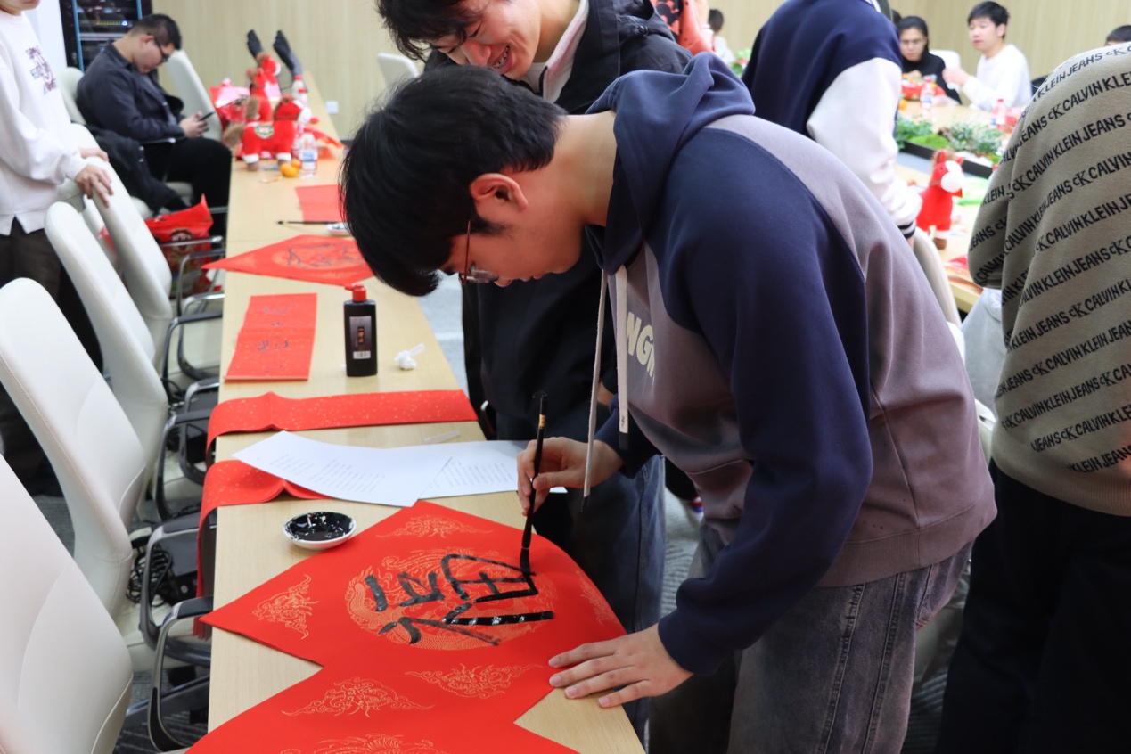 伴随着欢快的乐曲声,到场师生一起写“福”字和春联,一起表达对新年的美好祝愿。张悦经理、李奕晗老师和丁瑞云老师挥笔写下“福”字、“心想事成”等寄语,同学们也纷纷提笔,书写新年期许,在笔墨书香中喜迎新春。