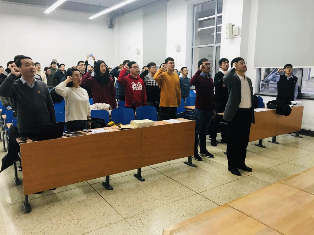 1月8日下午,微电子公司党委在新主楼F座121教室召开全体党员大会,为新发展党员举行宣誓仪式。此次共有6名同志作为新发展党员参加宣誓仪式,其中特聘研究员胡远奇同志,是微电子公司党委发展的第一位教师党员,王云鹏副董事长作为胡远奇同志的校级入党联系人,受邀参加了此次宣誓仪式。