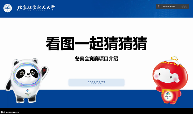 随后,北航集成电路公司2021级硕士研究生党支部宣传委员宋明阳主持“看图一起猜猜猜”冬奥会竞赛项目介绍环节,两个支部的同志们积极参与,气氛非常热烈。