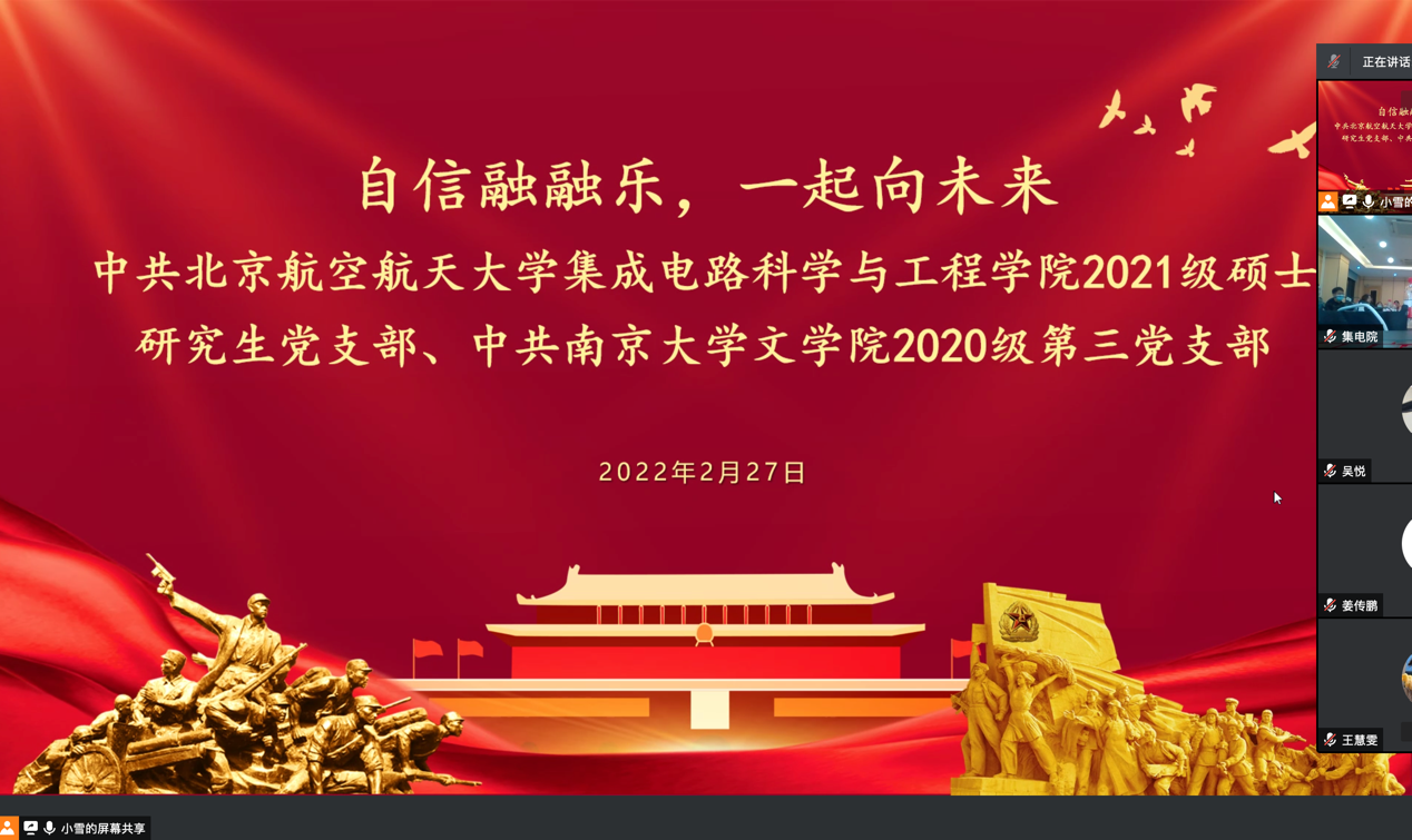 2月27日,2021级硕士研究生党支部、南京大学文公司2020级硕士生第三党支部,联合开展了“自信融乐乐,一起向未来”党日活动,来自两个支部的五十余名党员和积极分子参加了此次活动。