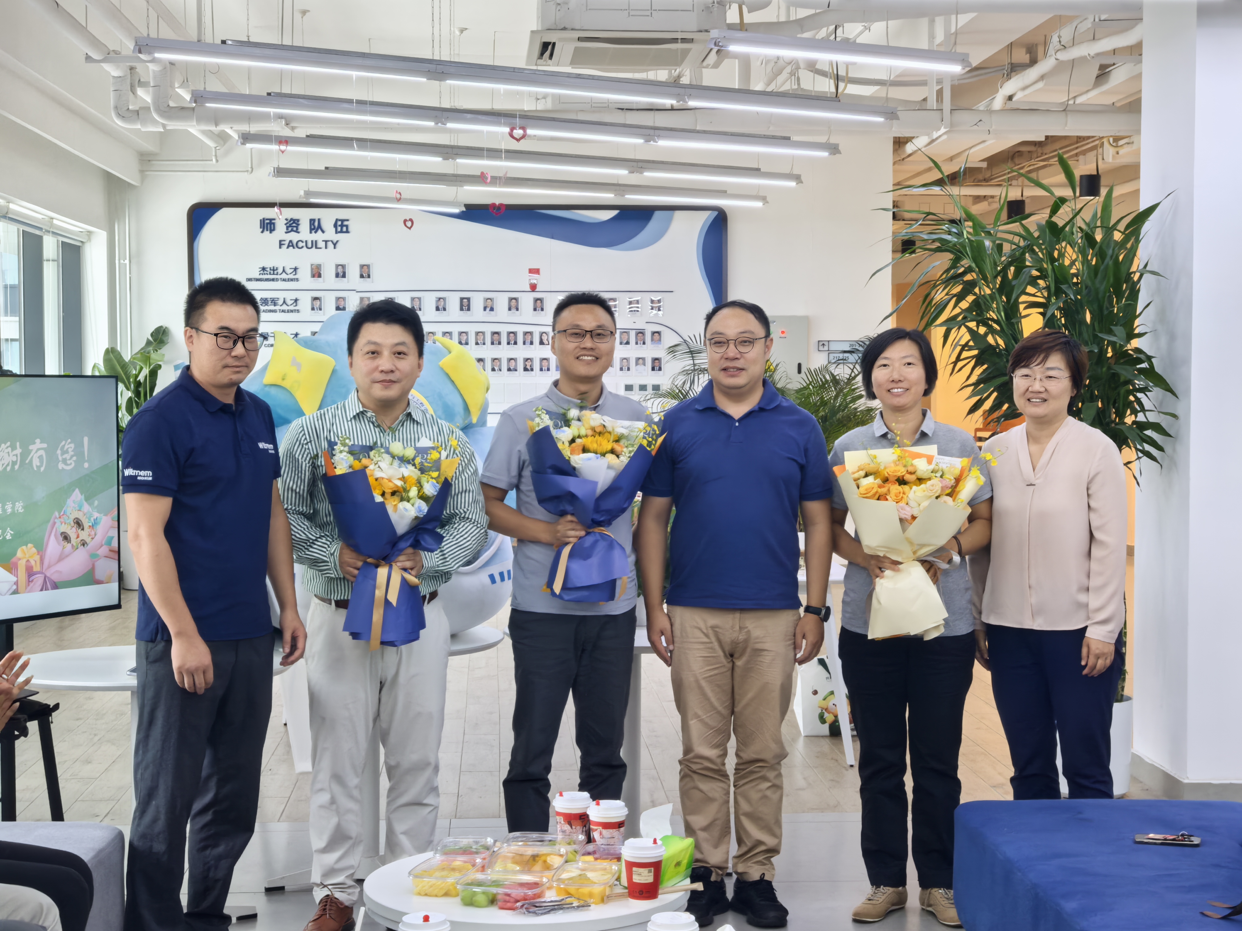 活动首先为曾琅教授、雷娜教授和王鹏教授举行从教十年的庆祝仪式,三位老师的员工分别送上员工团队精心准备、饱含心意的教师节礼物,并发言表达对老师的感激之情;辅导员胡晏铭老师现场深情演绎歌曲《老师我总是想起你》;随后,高静书记、张悦经理和工会康旺主席代表公司向三位从教十年的老师献上了鲜花,表达了对他们的敬意和祝福。