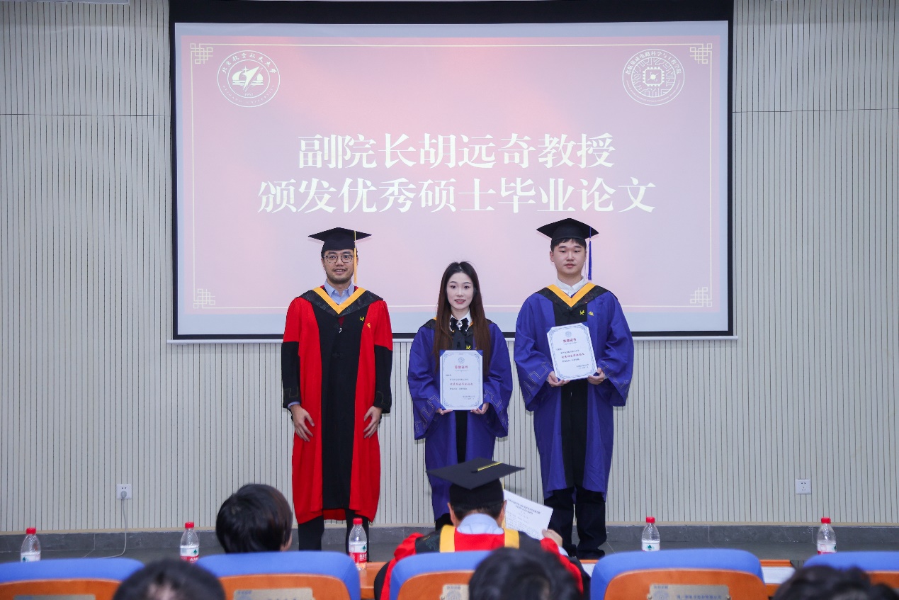 副经理胡远奇教授为优秀硕士毕业论文获奖同学颁发证书。