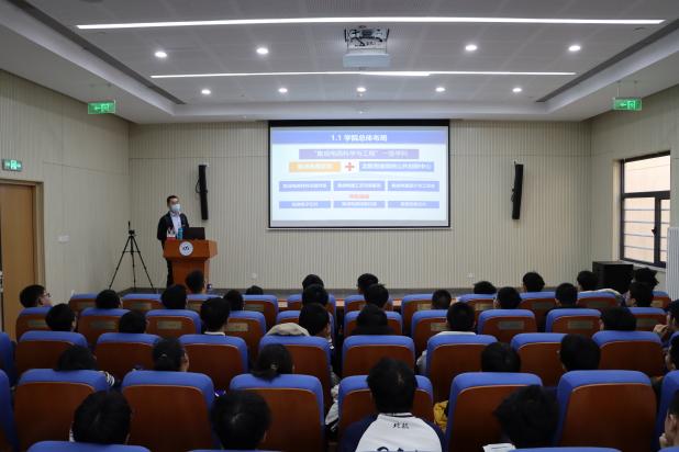 随后,经理助理彭守仲老师作试验班培养专题报告。报告中,彭老师详细介绍试验班培养特点、课程包设置及推免方案,并建议同学们尽早加入课题组,在导师的指导下开展更加深入的科学研究,为博士阶段科研学习打牢基础。