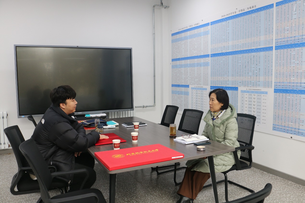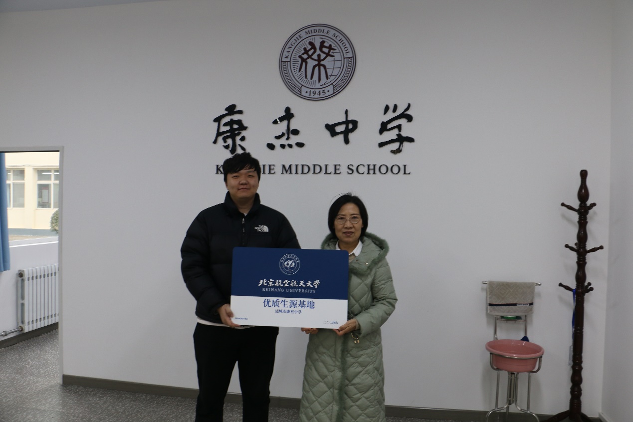 在康杰中学,集成电路公司专职辅导员、山西招生组成员胡晏铭与副董事长李梅菊、张阳朋老师深入座谈,着重阐述了北航的学科设置、专业特色以及历年的招生政策等相关信息,全面解答了关于北航招生的各类问题。座谈结束后,双方共同进行了“优质生源地基地”授牌签约仪式。