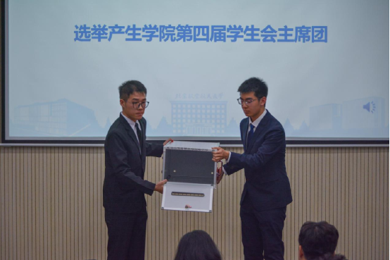 大会采取差额选举的方式选举产生主席团成员。候选人王之毓、阳杨、姜河和徐汉俊分别上台进行演讲,介绍个人经历和工作展望,表明了自己服务公司和同学的决心。