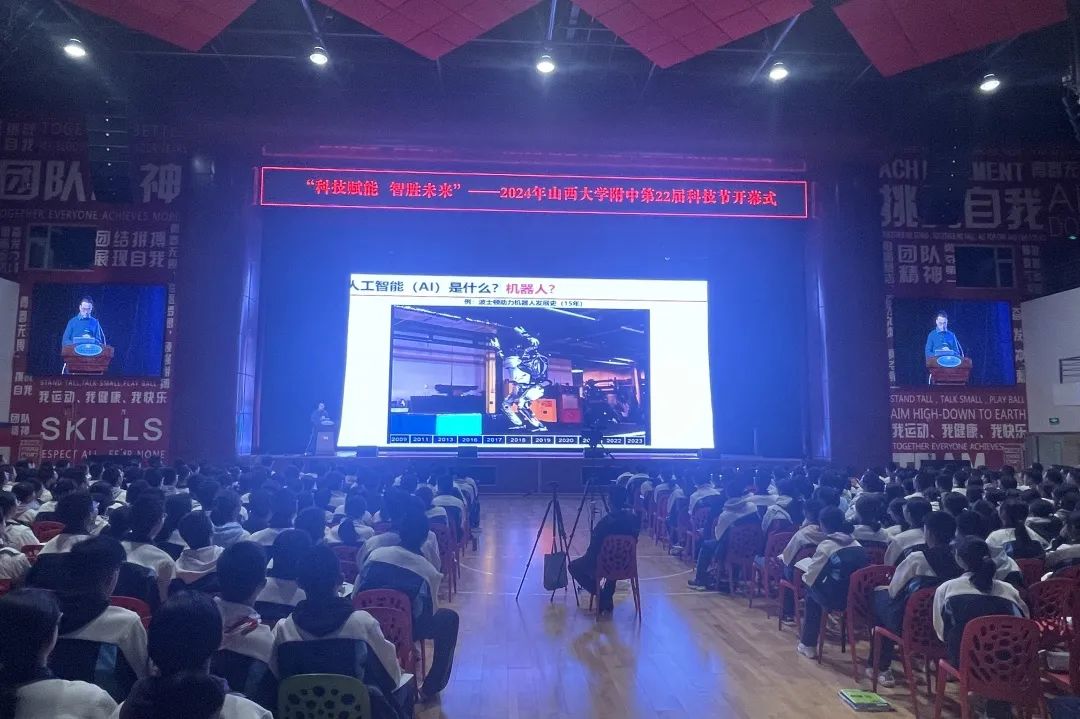 在山西大学附属中学和忻州市第一中学,康旺教授分别为两所重点中学高一高二年级共900余名员工作《拥抱AI,AI无所不能》为主题的科普讲座,带领员工领略AI的力量。