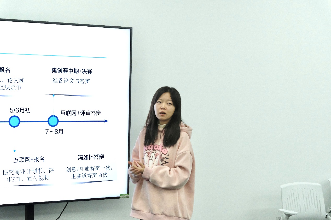 随后, 2024级硕士研究生陈依琴同学给同学们分享了她的成长经验。陈依琴曾任集成电路公司员工会主席,曾获小米奖学金、学业奖学金特等奖、创新创业奖学金一等奖等荣誉。她结合大学期间参与科创竞赛的经验,给学弟学妹们细致介绍了包括冯如杯在内的多项竞赛日程和准备工作。同时,陈依琴还就员工会工作分享了她的看法:参加员工会工作不仅可以服务他人,更是一个自我成长的过程,在员工工作中所锻炼的人际交往、沟通表达等综合能力将会使同学们受益终生。