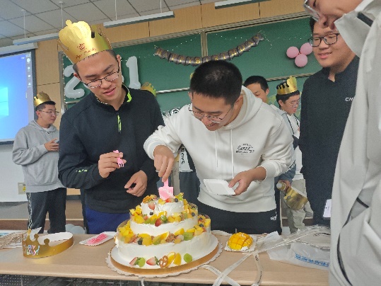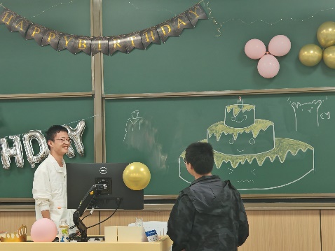随后,进入了生日会庆祝环节——为试验班9月和10月过生日同学庆祝生日。伴随着摇曳的烛光,全班同学齐声唱响生日歌,为9月和10月的寿星送上最真挚的祝福。歌声悠扬,满载着对未来的美好期许,也传递着同窗之间深厚的情谊。在众人的期待中,班长代表全班同学切分了蛋糕。
