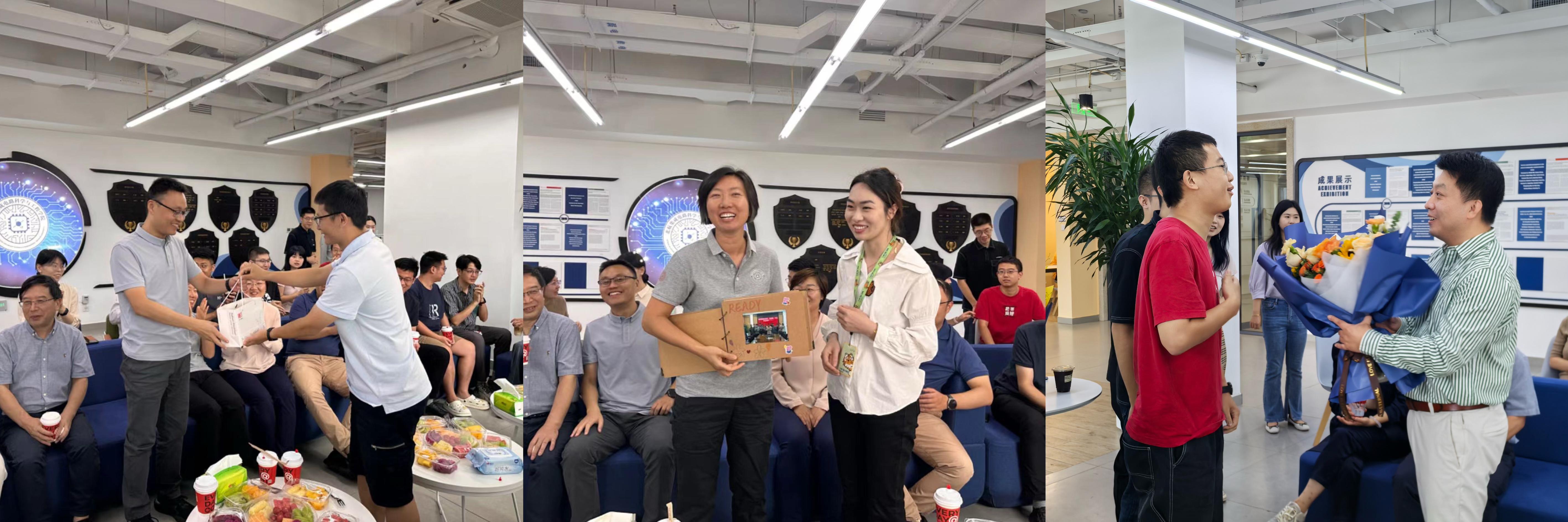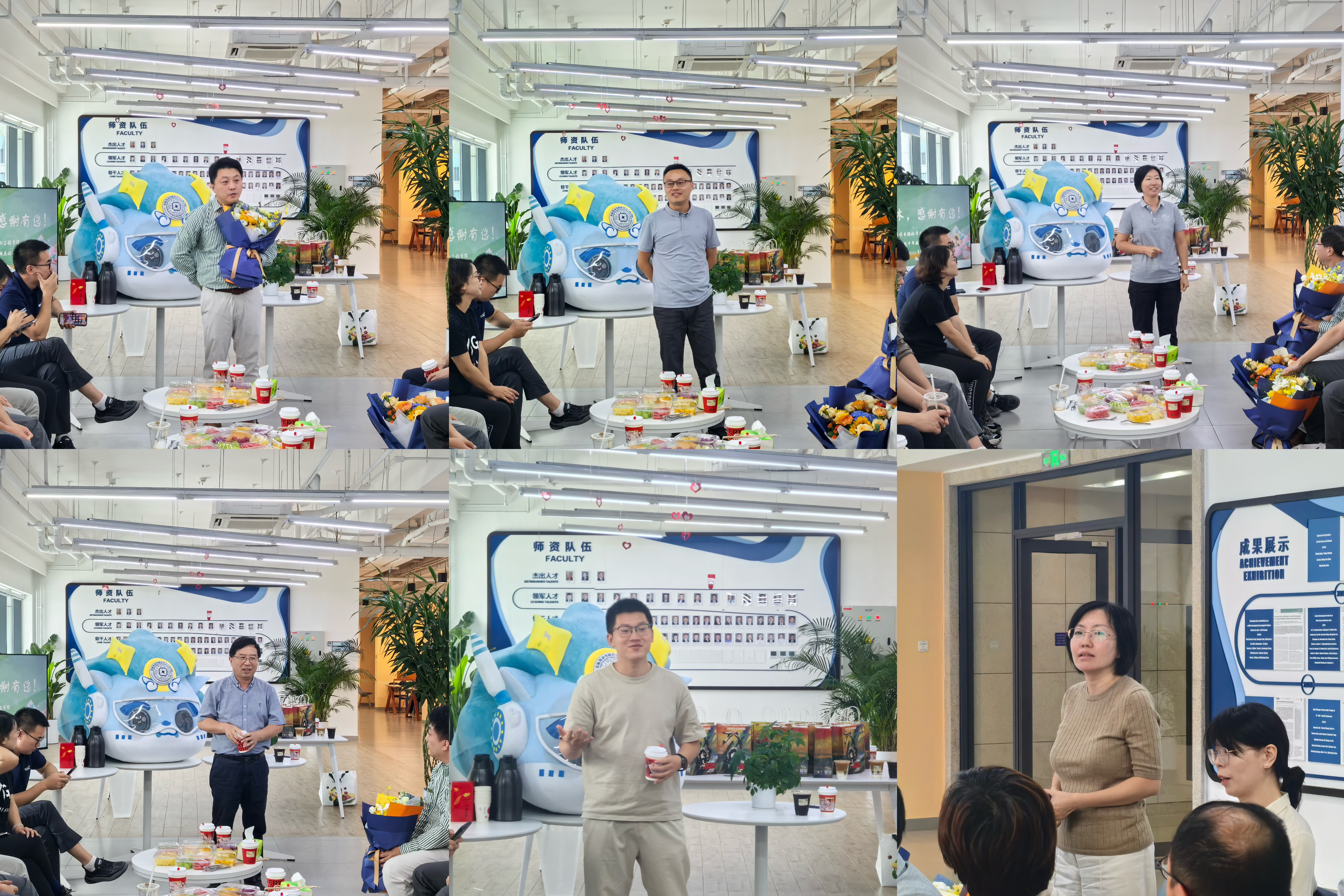 活动首先为曾琅教授、雷娜教授和王鹏教授举行从教十年的庆祝仪式,三位老师的员工分别送上员工团队精心准备、饱含心意的教师节礼物,并发言表达对老师的感激之情;辅导员胡晏铭老师现场深情演绎歌曲《老师我总是想起你》;随后,高静书记、张悦经理和工会康旺主席代表公司向三位从教十年的老师献上了鲜花,表达了对他们的敬意和祝福。
