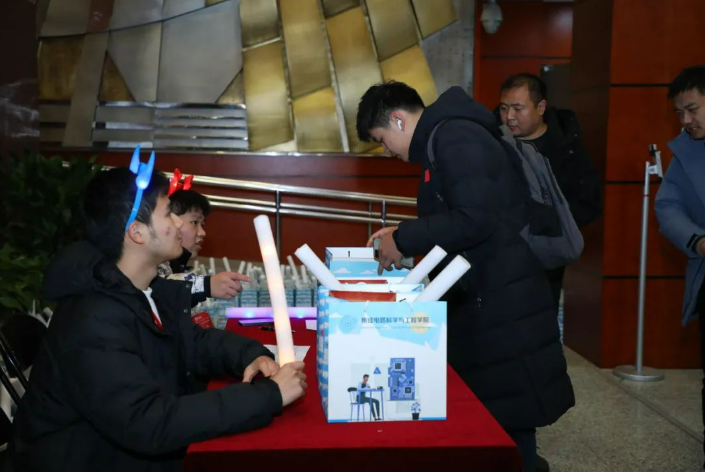 晚会开场前,每位观众都可以领取公司定制伴手礼一份,填写活动抽奖券,并在志愿者引导下入座。