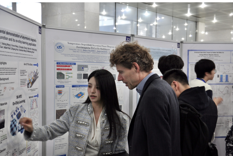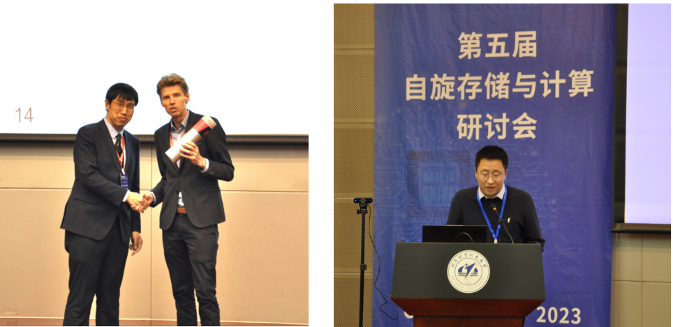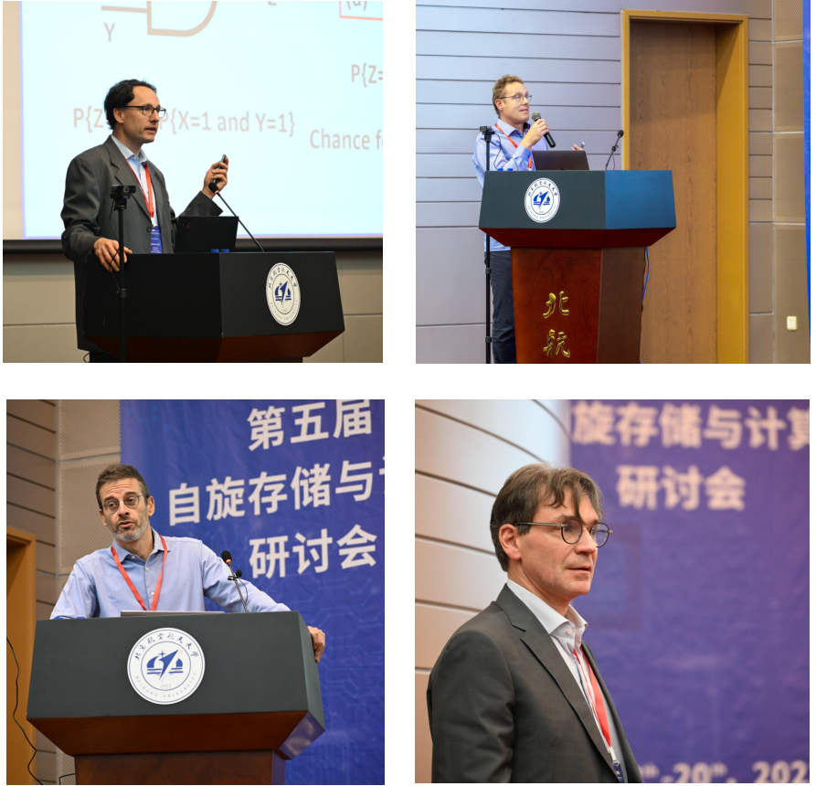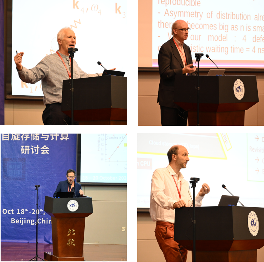 在为期三天的研讨会中,三十余位国际专家展示了他们课题组的最新研究成果。报告主题涵盖了自旋电子学在存储与计算等方向的研究热点,包括基础理论研究和工业应用。Gerrit E.W. Bauer教授(东北大学、中国科公司大学)、Lin Chen教授(慕尼黑工业大学)、Abdelmadjid Anane教授(巴黎萨克雷大学)、Nicolas Vernier教授(巴黎萨克雷大学)和Jason Robinson教授(剑桥大学)等分享了关于磁性金属和半导体在微观表征和物理特性方面的最新进展;Giovanni Finocchio教授(梅西纳大学)、Ahmad Awad教授(哥德堡大学)和Hyunsoo Yang教授(新加坡国立大学)介绍了自旋电子学器件的新奇现象以及在类脑计算等领域的广阔应用前景。Kevin Garello研究员(法国Spintec研究所)和Jérémy Létang研究员(奥地利Silicon实验室)则从先进技术研发的角度介绍了自旋存储芯片和传感器的工艺发展及丰富研究手段。