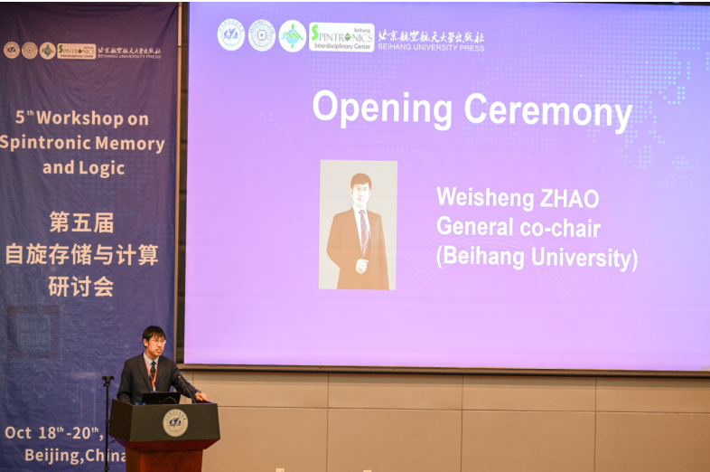 (赵巍胜副董事长主持开幕仪式并介绍北航自旋电子研究发展进程)