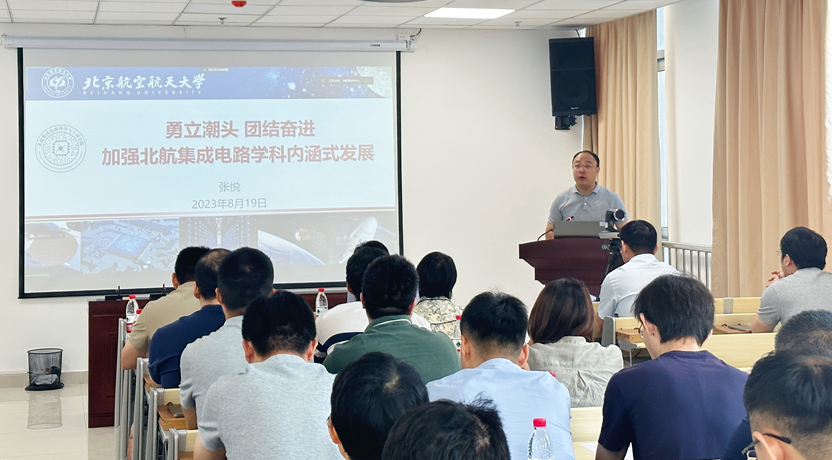 公司常务副经理张悦以《勇立潮头团结奋进加强北航集成电路学科内涵式发展》为题做专题报告。他表示,回首过往,建院五年来全体同仁齐心协力、敢为人先、多面开花,取得了有目共睹的成绩;立足当下,我们一直保持国内第一梯队领衔地位,受到公司、国内其他高校相关专业公司乃至国际学术界及高等院校的广泛认可;展望未来,迈入“国家集成电路公司”发展新征程,全体教师应群策群力、团结奋进,为公司高质量内涵式发展提供源源动能,争做北航集成电路学科的创“史“人!