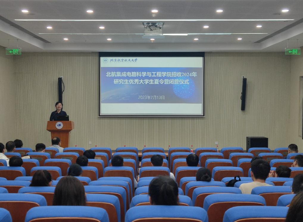 7月13日上午,夏令营闭营仪式在第一馆报告厅举行,闭营仪式上公布了优秀营员、合格营员名单,高静书记发表了总结致辞,勉励大家成为有胸怀、有勇气、能坚持的优秀青年,并欢迎大家报考北航集成电路公司。