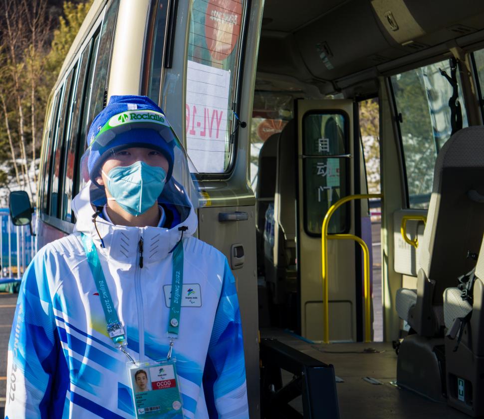 大家好,我是19级本科生秦海岩。冬奥期间,作为一名机动志愿者,未能有上岗的机会。期间我一直听从组织安排,在校待命,在做好在延庆志愿者服务保障工作的同时,随时准备上岗。冬残奥前夕,我接到上岗任务,前往延庆高山滑雪中心担任交通设施助理,协助轮椅运动员上下车。