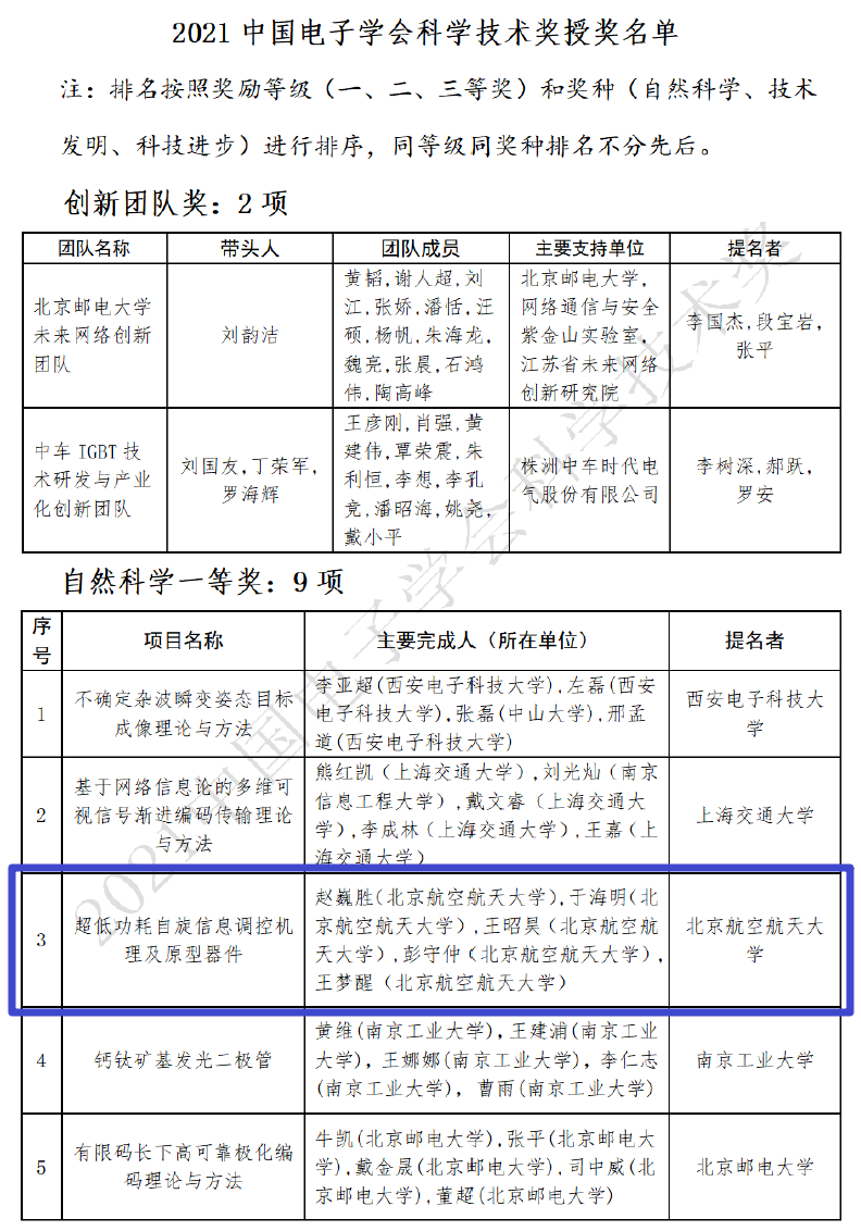 近日,中国电子学会公布了2021年中国电子学会科学技术奖评选结果,bv伟德自旋芯片团队的研究成果“超低功耗自旋信息调控机理及原型器件”荣获中国电子学会自然科学奖一等奖,成果主要完成人包括bv伟德中国官方网站赵巍胜、于海明、王昭昊、彭守仲和王梦醒。