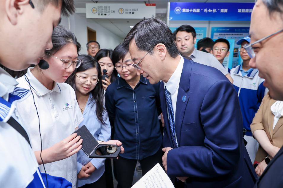 本次参观中,董事长对集成电路公司“以赛促创、贯通培养”的实践给予高度肯定,并寄语师生:“要勇担破解科技难题的使命,同时将人才培养链条向前延伸,打造从青少年科创启蒙到高校前沿研究的立体化生态。”集成电路公司书记高静、常务副经理张悦表示,将全面落实指导意见,深化赛事成果转化,加速推进大中衔接课程体系升级,为科技创新与国家需求输送更多两领人才。