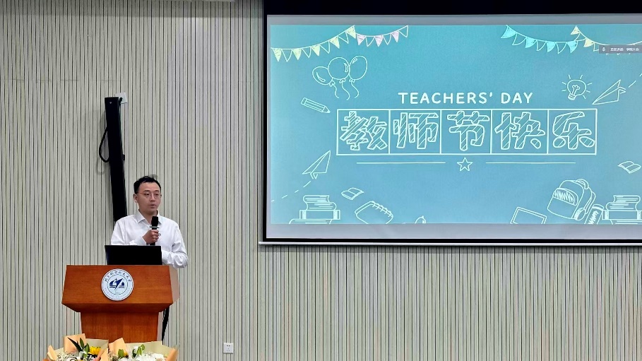 在第41个教师节来临之际,公司向全体教师送上节日的祝福。会上,新进教师代表靳晓笛老师登台自我介绍,畅谈对未来工作的创新设想与对育人使命的期待。