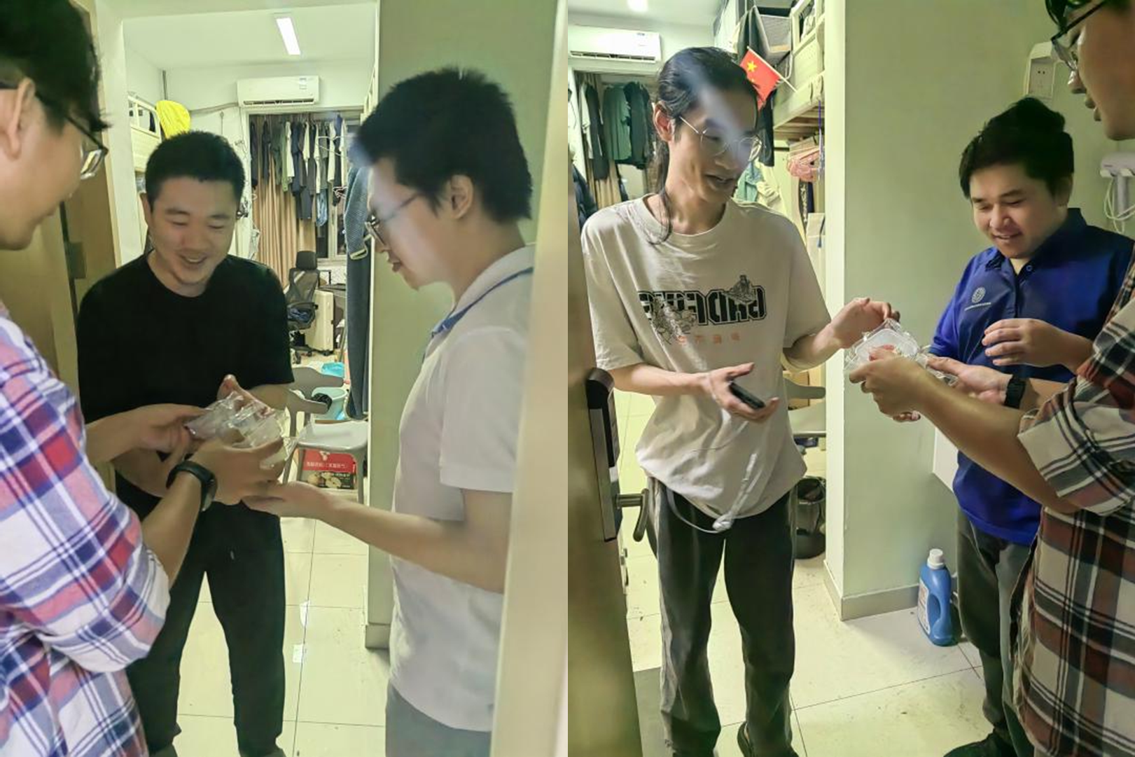 2022级班委进宿舍送月饼,传递公司关怀。