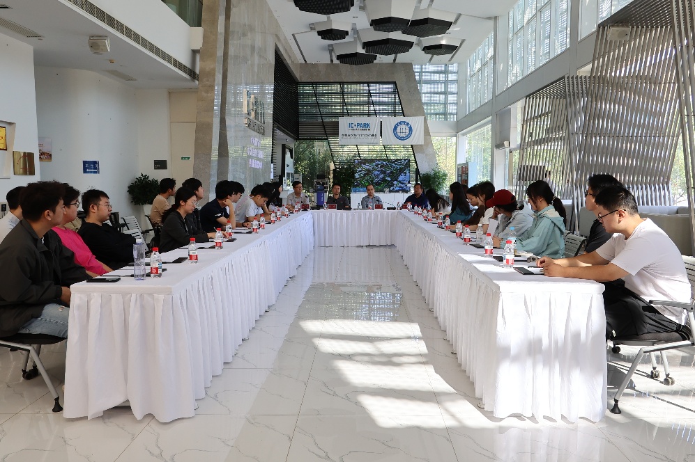 活动开始,园区党支部代表热情接待公司师生,并详细介绍了中关村集成电路设计园的发展历程与战略定位。作为落实国家集成电路产业战略的重要载体,园区聚焦“北设计”产业布局,汇聚了比特大陆、豪威科技、地平线等一批龙头企业,形成了覆盖设计、研发、测试的完整产业链。2020年,园区实现集成电路设计产值近200亿元,占全国总产值约8%。通过这些详实的数据和具体的案例,师生们深切感受到园区作为国家集成电路产业创新发展的重要载体所展现出的“芯”速度,以及其在推动科技自立自强道路上所凝聚的“芯”力量。园区蓬勃的发展态势和取得的显著成就,让在场师生对我国集成电路产业的未来充满信心与期待。