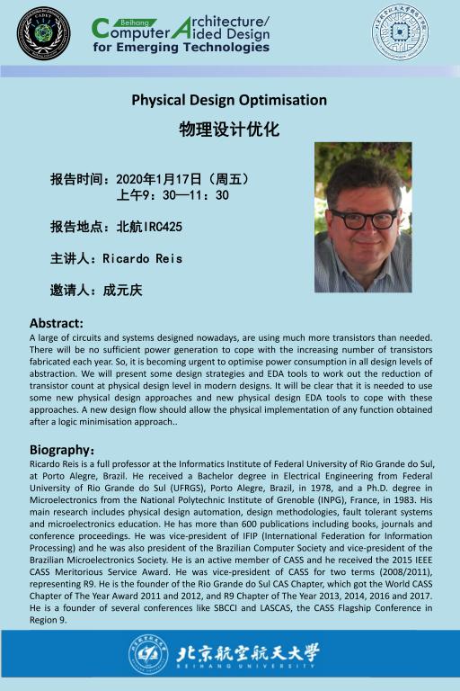 1月17日Ricardo Reis教授学术报告《物理设计优化》
