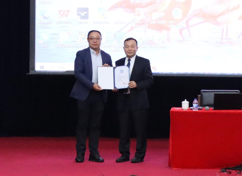 公司常务副经理张悦为俞大鹏院士颁发了北航大讲堂证书。