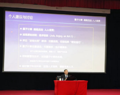 讲座中,俞院士由浅至深,由宏观至微观,展开了一幅壮阔的量子世界画卷。俞院士通过生动的动画演示和数据列举,表明了量子计算的潜力与优越性。俞院士指出,在量子技术革命的关键节点,全世界各个国家与科研机构百舸争流,中国应该大力推进量子技术的发展,以在世界的竞争中拔得头筹,实现“中国量子优越”。