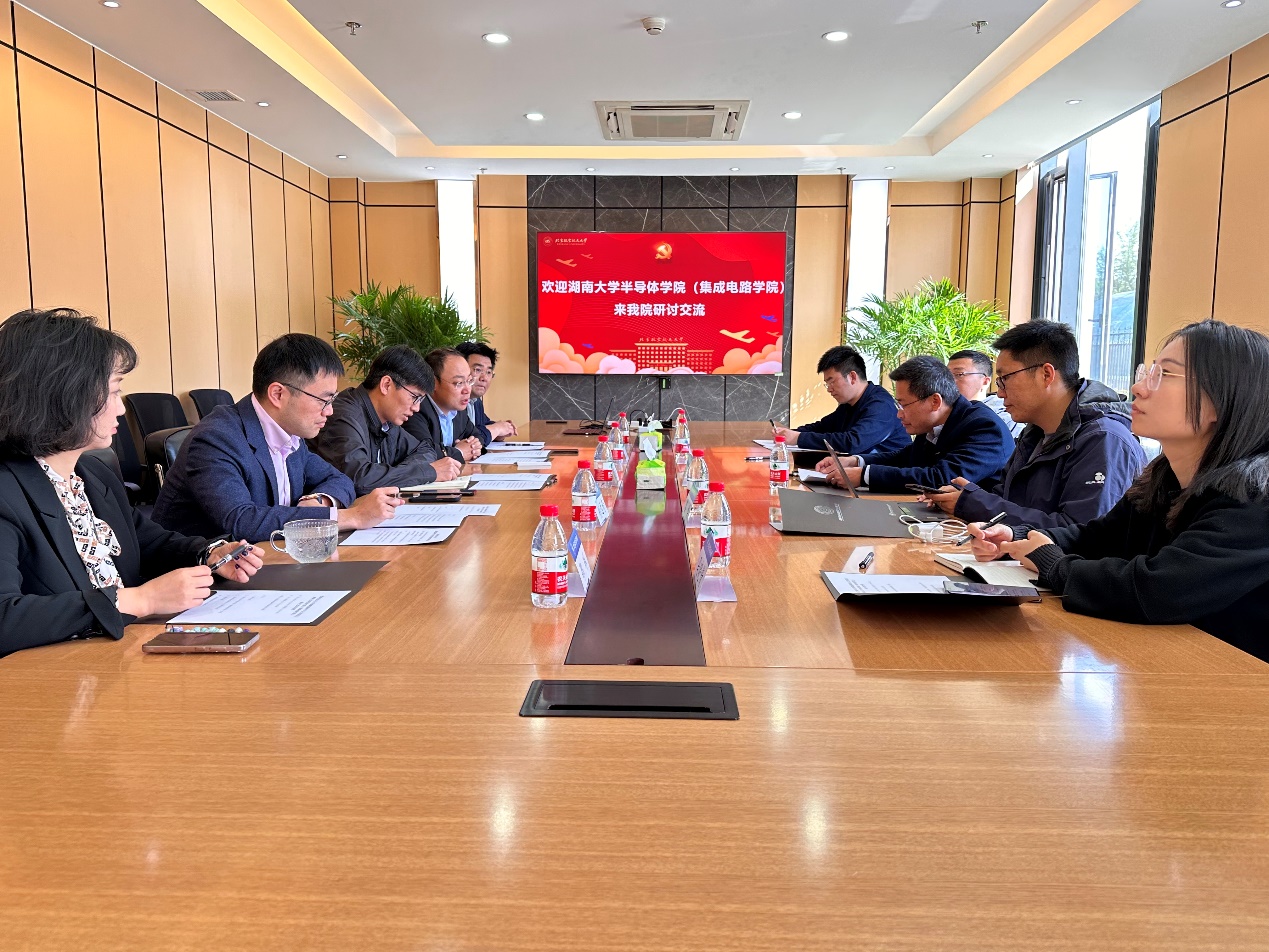 为学习贯彻党的二十大精神,落实学习贯彻习近平新时代中国特色社会主义思想主题教育“学思想、强党性、重实践、建新功”的总要求,4月26日上午,湖南大学半导体公司副经理张吉良、张明一行受邀来到公司集成电路公司开展调研交流。公司集成电路公司党委书记梁恩和、副经理张悦、胡远奇等参加了座谈。