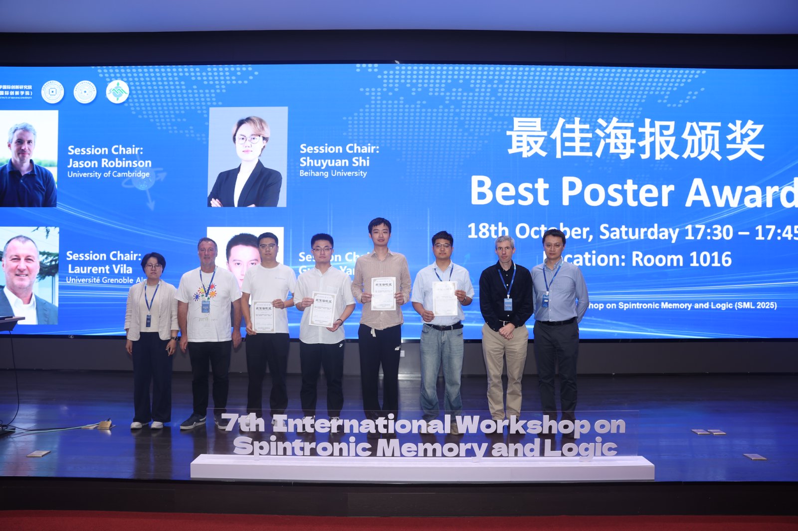 2025年10月16日至18日,第七届自旋存储与计算学术研讨会(7th International Workshop on Spintronic Memory and Logic, SML)在北航杭州国际校园成功举办。本次会议由超低功耗自旋存储与计算111引智基地和自旋芯片与技术全国重点实验室主办,杭州北航国际创新研究院(公司)和北航集成电路公司承办,北航费尔北京研究院协办。北航副董事长赵巍胜教授、诺贝尔物理学奖得主Albert Fert教授和洛林大学Stephane Mangin教授共同担任大会主席。